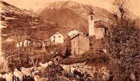 | Anys 1920-30. València d'Àneu. Imatge idíl·lica amb un ramat de bens pasturant, encara sense adossades! |