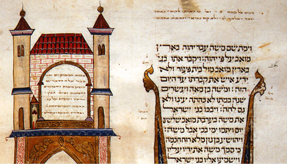 1299-1300. Bíblia de Cervera, full 118v (BNP). Detall de la pàgina final del Deuteronomi. |