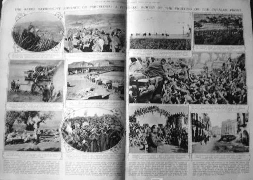 | Gener de 1939, l'ocupació espanyola. Doble pàgina del reportatge del The Illustrated London News del 28 de gener, núm. 5.206. |
