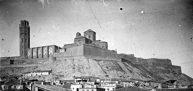 | 1920. Seu Vella, Lleida. Fotografia de Josep Salvany. L'esplèndida catedral, sempre altiva sobre la ciutat i la plana, malgrat trobar-se sotmesa militarment. |