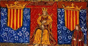 Ferran II presidint les Corts catalanes a Barcelona, amb l'espasa a la falda, com a símbol de senyoratge i majestat.