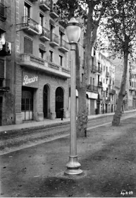 Un fanal elèctric de la Rambla de Ferran. La ciutat va començar a substituir els fanals de gas amb els elèctrics durant la segona meitat dels anys 1920. La llum elèctrica als carrers, més fàcil i potent, era llavors un dels signes més clars de modernització.