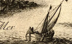 Diferents tipus de vaixells de guerra: una barca de transport, una galera o galiota, i un majestuós galió.