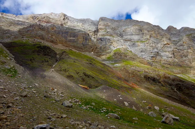 Fent benzina al costat del rierol de Llauset abans de la forta ascensió. La vall puja tota dreta des de l'embassament fins al coll. |