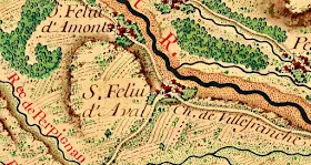 | 1700. El Rosselló, «Carte des environs de Perpignan» (Gallica). Sant Feliu d'Amunt i d'Avall. |