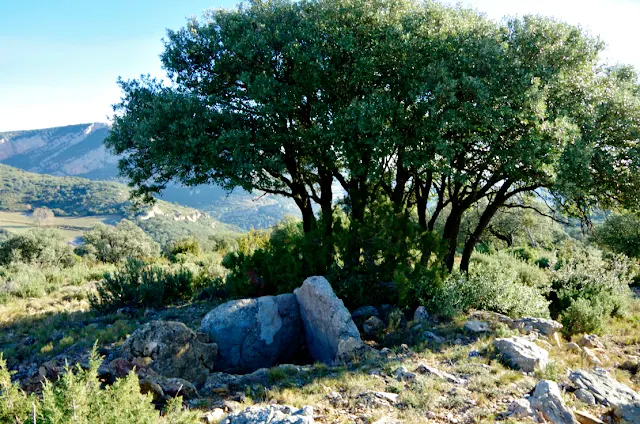 Nosaltres continuarem fins a trobar les marques taronja de la ruta que puja directa des de Vilanova. Ja haurem passat pels peus de la Roca Alta, i ara la flanquejarem per anar-hi a dinar. Aquest darrer tram és un camí de ferradura espectacular, molt ben conservat, i que en la darrera guerra fou usat pels soldats republicans de la 26a Divisió, 120 Brigada Mixta, companyia d'enginyers, CNT 1938, AIT. Durruti CNT, segons la inscripció que es conserva en la dita Bassa de Durruti. Per aquest graell o petit grau, dit d'Esmolacalces, hi farem a partir d'ara l'ascens i descens.