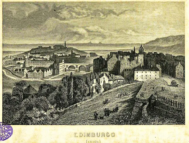 | 1827. Mont Orgueil /Gorey Castle (Illa de Jersey), «Geografia Universal o Descripció de totes les parts del món», Conrad Malte-Brun (ed. cast. BNE, 1869).