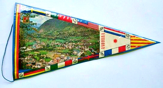 Dos banderins de foto idèntica però amb l'afegitó d'un marc de pi per enquadrar la vista en un d'ells. Sovint, el Principat andorrà era considerat com una "província" (espanyola) més.
