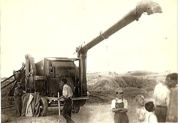 | 1919. Sindicat Agrícola de Sant Isidre, d'Artesa de Lleida. «Agricultura, Revista Agrícola Catalana», núm. 18, 20 de setembre (ddd.uab). La maquinària es deixava ben tapada d'una borrassa per evitar-li les humides ruades o rosades estiuenques durant les nits urgellenques. |