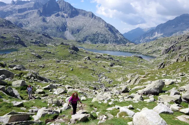 Dia espectacular fins al Montardo (2.833 m) per la llarga ruta de Cavallers, de vuit del matí a vuit del vespre: trescant al nostre passet, envoltats del verd i del blau, serpentejant pels llacs i senders entre roquissars imponents, sense que hi faltés el banyet refrescant del migdia, el caferet al refugi a la pujada i la cerveseta a la baixada, i la tamborinada de la tarda. Un veritable paradís!