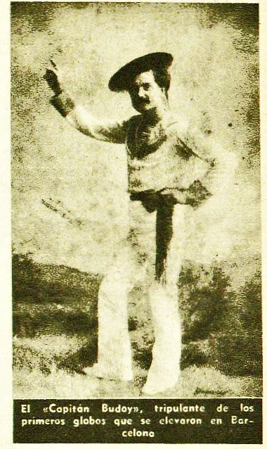 | Segle XIX. L'aeronauta Josep Budoy. «Destino», 30 de juny de 1951 (ARCA). El tripulant de globus més famós de la Barcelona de la segona meitat del segle XIX. No hi ha indicació de l'origen de la fotografia en aquest reportatge, però si fos l'original ben bé podria tractar-se del full solt repartit pel diari barceloní «El Diluvio» a l'octubre de 1881. |