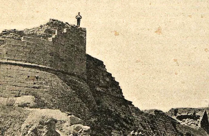 Les runes del que fou imponent castell arbequí. La imatge ens en mostra l'estat ja ruïnós en què es trobava a final del segle XIX. En canvi, cinquanta anys abans, deia en Pascual Madoz al Seu Diccionario que «hay un soberbio castillo feudal, propio del Sr. duque de Medinaceli, cuyos muros, torres y parte del palacio se hallan en buen estado». Els figurants col·locats estratègicament pel fotògraf dalt de les torres, ens fan evident les grans proporcions de l'edifici. L'antic castell medieval, possessió dels Cardona, anà a parar per casoris de conveniència amb la gran noblesa castellana, al segle XVI, a la casa dels ducs de Medinaceli. La monarquia absoluta s'estava imposant i qui no s'arronsava al rei, doncs no en rebia els beneficis derivats de l'administració civil i militar de l'Estat (espanyol).