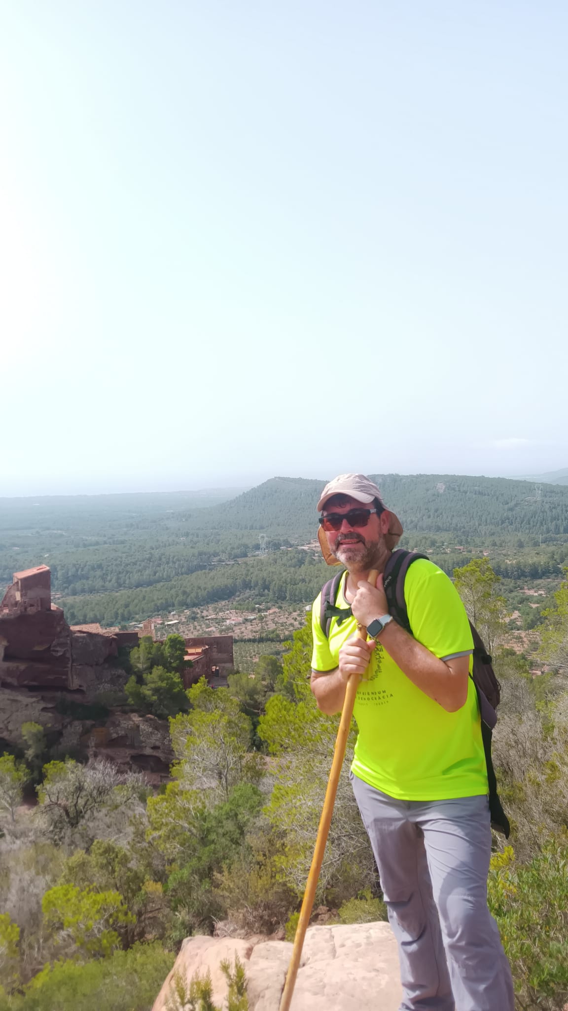 Podeu trobar i descarregar la ruta al Wikiloc (fantàstic web per als caminaires), amb totes les dades tècniques: Vilanova d'Escornalbou-Foradada de l'Areny-Mare de Déu de la Roca-Cova de Patou-Cim de l'Areny (enllaç). Si pot ser, no la feu a l'agost, que la xafogor gairebé ens tomba, uf! Sort del restaurant de l'ermita, que permet de refrigerar-s'hi com cal. La ruta fou feta pel centre excursionista local i té de tot en què poder recrear-nos-hi: lliseres, sogues, escaletes, trencants traïdors, passos aeris... i la meravella infinita de les roques: compteu sempre a invertir-hi més temps, en la ruta: que no podreu parar de badar i retratar.