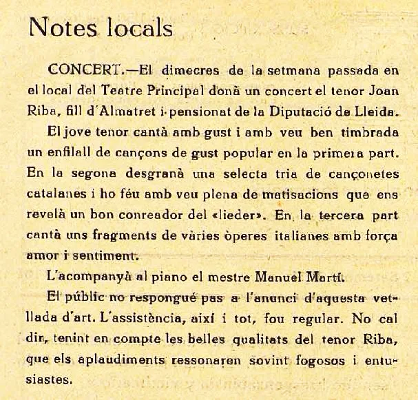 Anava amunt i avall amb lo carro tot cantant, i el contractista va sentir-lo i va avisar lo director de l'Orfeó tarragoní. Havent-lo escoltat, decideixen portar-lo a Barcelona, davant del mestre Lamote de Grignon. Li proposaren de començar a estudiar música, però calia fer lo servei militar, i li correspongué anar a l'Àfrica: s'hi convertí en l'atracció dels generals de la companyia. Entre els quals el mateix Sanjurjo, que a l'infern sigui. Diu que allà li deien lo Maño, perquè tenia un gran repertori de jotes, no sabria dir si també tradicionals d'Almatret, com ho havien sigut de la plana lleidatana temps ha.