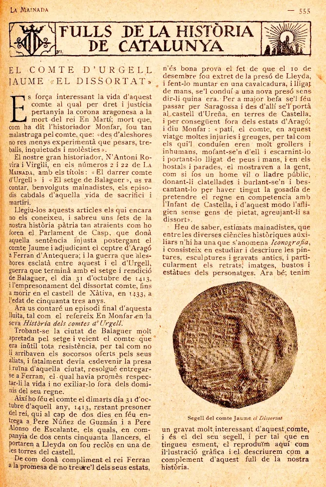 Seguim amb los articles de divulgació històrica que l'eminent historiador publicà en aquella revista infantil i juvenil, i que avui ja voldríem que les competències de l'ESO los incloguessen!