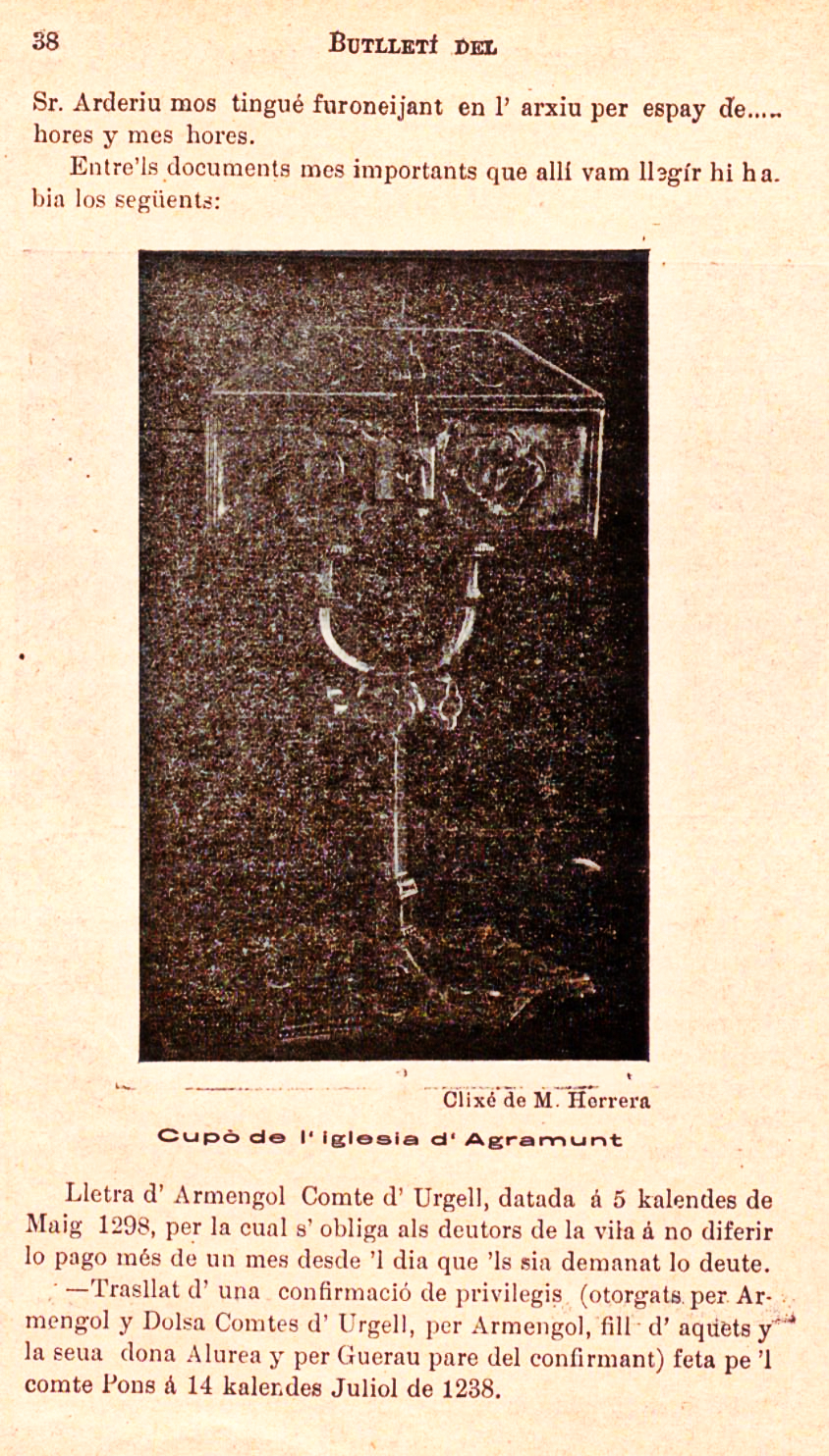 «El Pallaresa», de 8 de desembre (FPIEI). Dos dies de curses en aquella festa major agramuntina finisecular, que tenia l'envelat del ball a la plaça del Mercadal, a on «los corredores seran obsequiados con un brillante baile». Les curses eren amenitzades per la banda local La Lira. Aquell any s'hi inaugurava l'enllumenat públic de la vila. No és cap despropòsit que semblant afició al ciclisme s'anava afermant a altres poblacions lleidatanes.