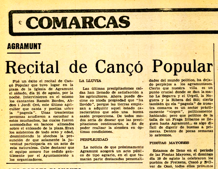 - Porter: Carles Mir i Guiu: el 'Carlets', òbviament del Cal Carlos, que de més gran fou conegut, si no m'erro —ho afegeixo de collita pròpia— com un dels millors cassolaires del poble, aquell a qui s'encarregava la gran cassola popular de la festa major als anys 80 i encara 90s del segle passat.