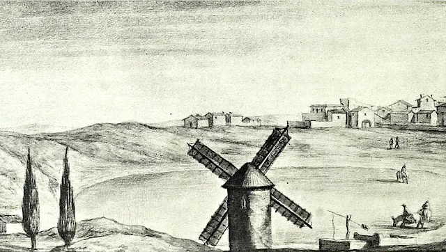 Des de Saragossa, la ruta principesca continua per la secular carrerada de la N-II cap a la Muela, als peus de l'altiplà mesetari, avui coberts de nombrosos molins de vent i de la corrupció política. |