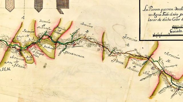 - Cervera, de 1.200 veïns (uns 6.000 hab.), ciutat important (i universitària), «capaz para todo», amb una gran fonda fora muralla. Lloc a on fer nit del seguici reial, després de deu llegües de camí. I lloc per a pendre's un dia de descans, que el cos quedava baldat dels sotracs dels carruatges al llarg dels sots del camí.
