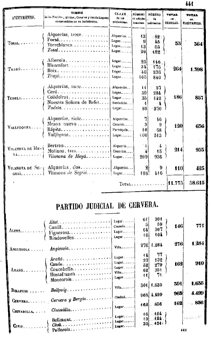1858. Demografia dels pobles lleidatans. «Nomenclàtor...» (BDH).