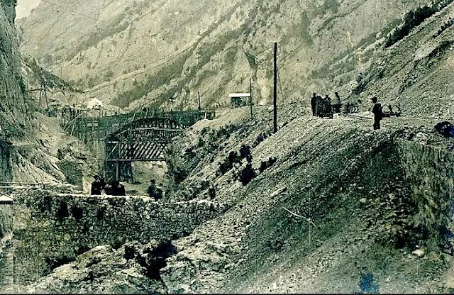 La carretera nova dels Terradets, després de la construcció del pantà de Tremp, amb les torres elèctriques per transportar la llum cap a la capital catalana, en aquells anys del segle XX de capitalisme desbocat.
