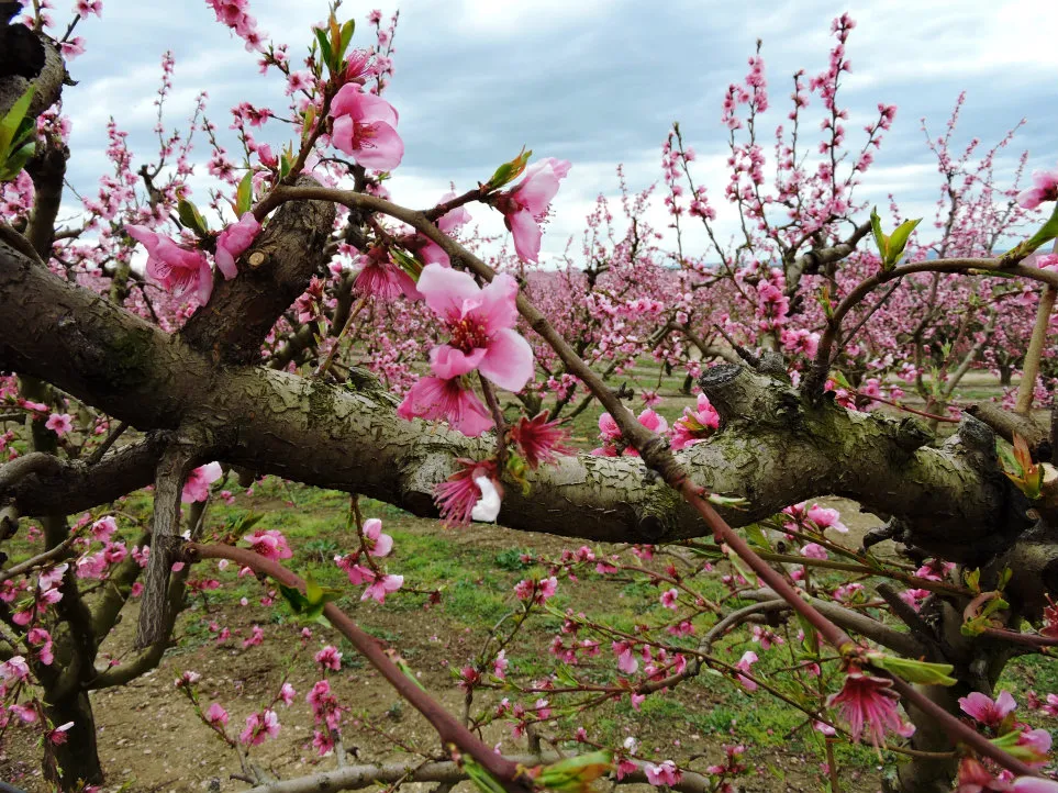 | 2015. Utxesa, Baix Segre. Finca Espax. Indescriptible: tots els tons del rosa concentrada en les flors dels nectariners i presseguers, que onegen suaument de serra en serra al Baix Segre. |