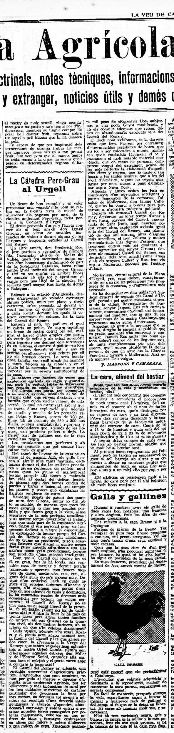 «La Publicidad», de 7 de novembre (ARCA). L'empresa s'anunciava llavors com a Fills d'Ignasi Girona, i la marca Castell del Remei, sempre amb ortografia prefabriana, s'anava consolidant.